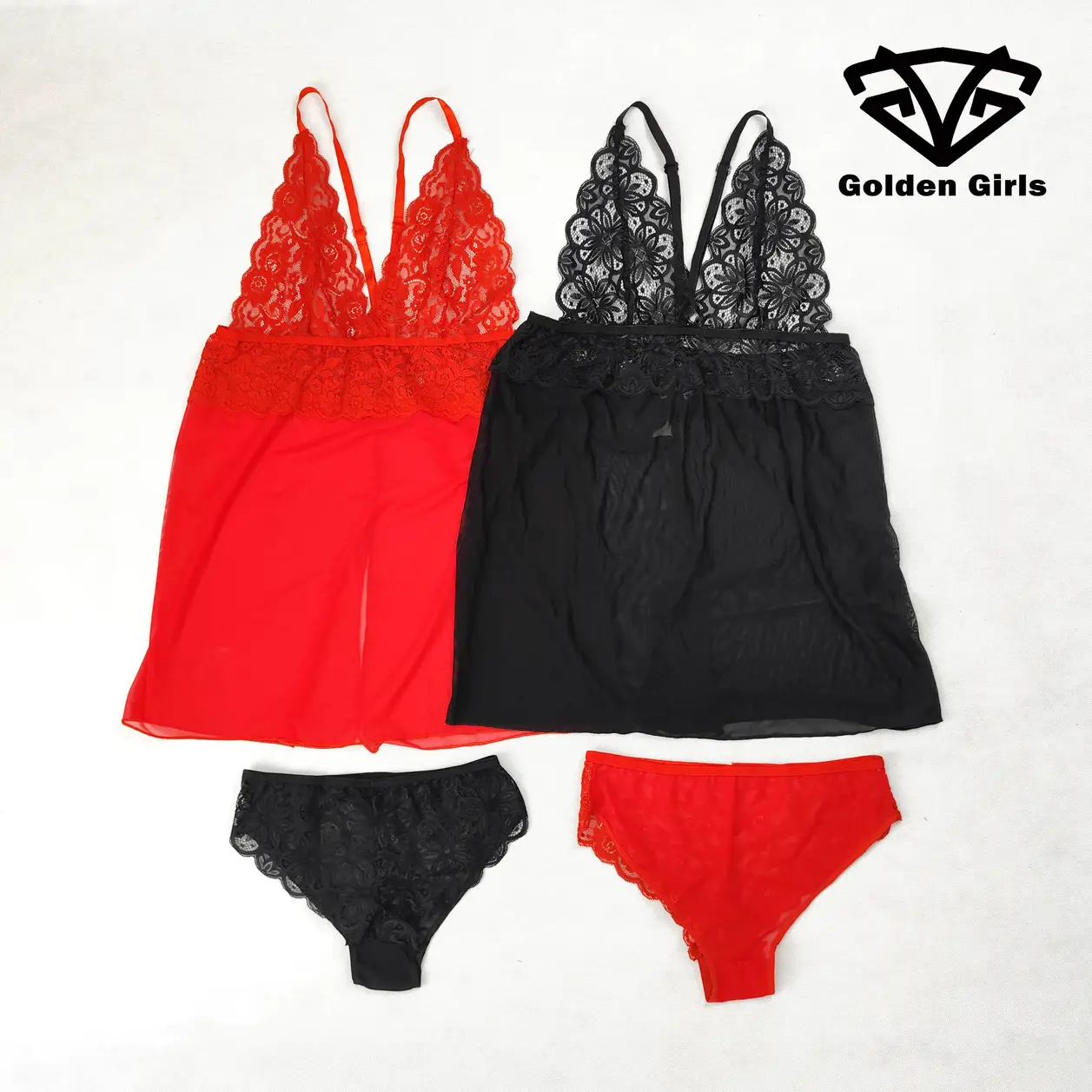 لباس خواب زنانه 606، یکی از مدلهای ساده و در عین حال جذاب فروشگاه لباس زیر دختران طلایی است که با کاسه تمام دانتل و طراحی پشت چاک باز و بند های رکاب قابل تنظیم، جلوهای زیبا و خاص برای بانوان ایجاد میکند. این مدل به همراه شورت اسلیپ پشت گیپوری با فاق پنبه، راحتی و جذابیت را همزمان ارائه میدهد. لباس خواب مدل 606 در دو رنگ پرطرفدار قرمز و مشکی و به صورت تک سایز، مناسب برای سایزهای 34 تا 46 در فروشگاه دختران طلایی عرضه شده و انتخابی مناسب برای داشتن استایلی شیک و متفاوت است.