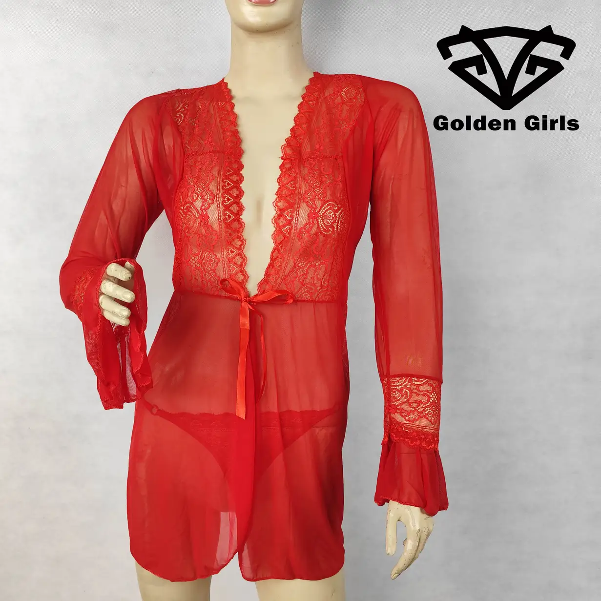 لباس خواب ۶۰۸ مدل روبدوشامبر، طراحی شیک و زنانهای دارد که از ترکیب ظریف دانتل و حریر ساخته شده است. قسمت مرکزی پشت و جلو لباس، همچنین مچ آستینها، با دانتل زیبا تزئین شده که جلوهای خاص و جلبتوجهکننده ایجاد میکند. این روبدوشامبر کوتاه با دو نوار ساتن در جلو قابلیت گره زدن دارد و سرآستینهای آن بهصورت مدلدار طراحی شدهاند تا به صورت چین دار و دامنی دیده شوند تا استایل محصول کاملتر شود.این لباس خواب در دو رنگ جذاب قرمز و مشکی عرضه شده و مناسب سایز ۳۴ تا ۴۴ است؛ انتخابی ایدهآل برای خانمهایی که به دنبال تلفیق راحتی، لطافت و زیبایی هستند